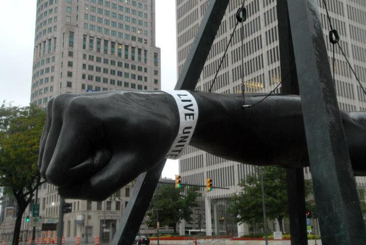 Last Friday, we launched this year’s United Way campaign with a torch lighting ceremony right across the street from The Fist. As I walked back to the office through the rain, I looked over and saw the sculpture wearing a “LIVE UNITED” wrist band. In a world that seems to be driven by matters on which opinions diverge, I thought this photo spoke to the need to find common ground even when we disagree.