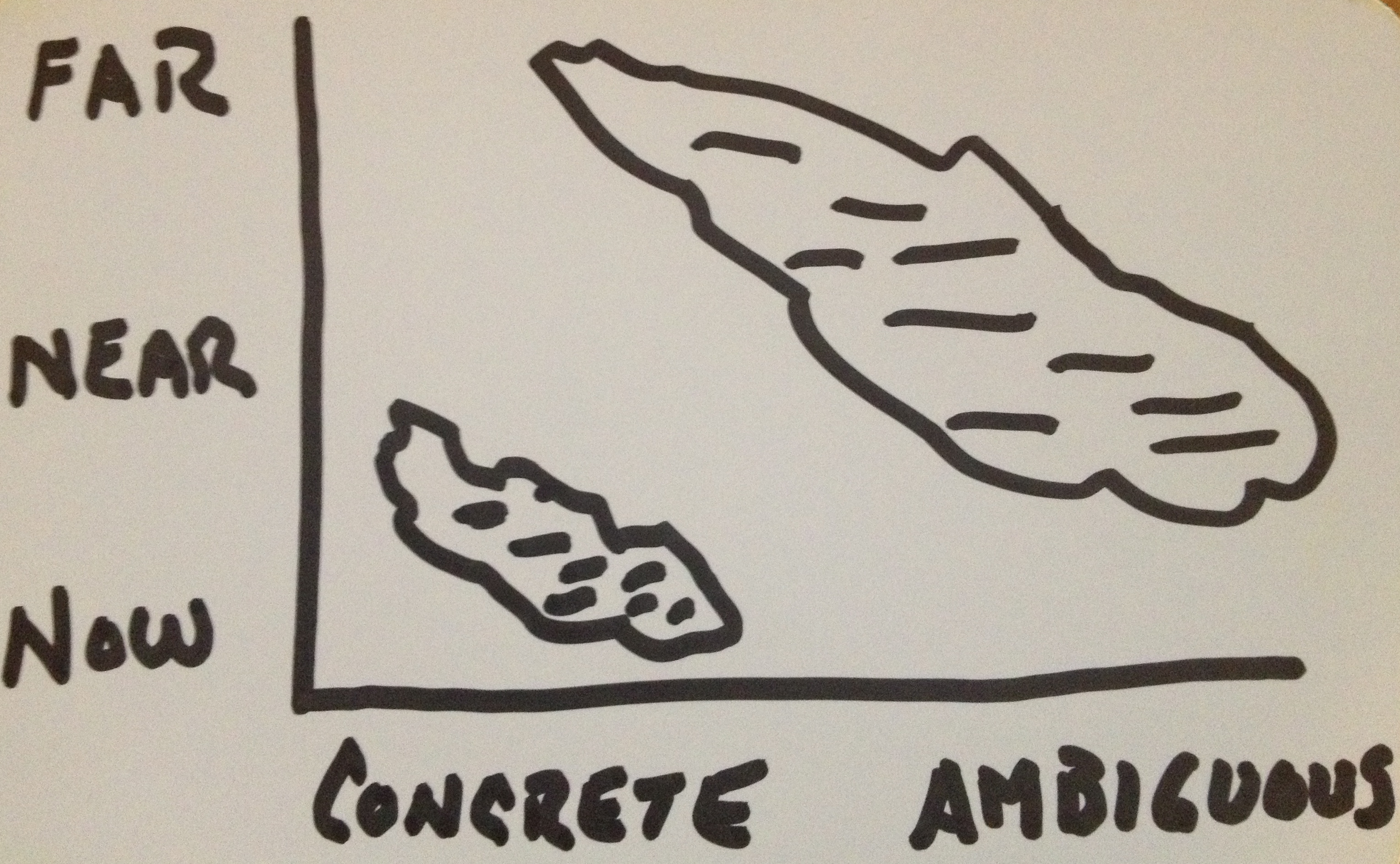 Jim Hackett, CEO of Steelcase, explained to me how most of the world is working on the NOW and CONCRETE. As leaders, he explained to me, we have to solve the problems that reside in the FAR and AMBIGUOUS. Jim was sharing with me how Design Thinking is a discipline that is used to solve the problems residing in the outer right corner of the axis. As a leader, our ability to deliver results in the NOW and CONCRETE give us the license to do the work in the FAR and AMBIGUOUS.